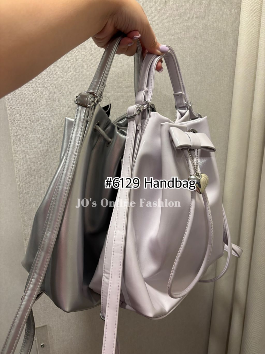現貨[6129] 極輕身仿皮2用大容量手袋/背囊(淡紫/銀)