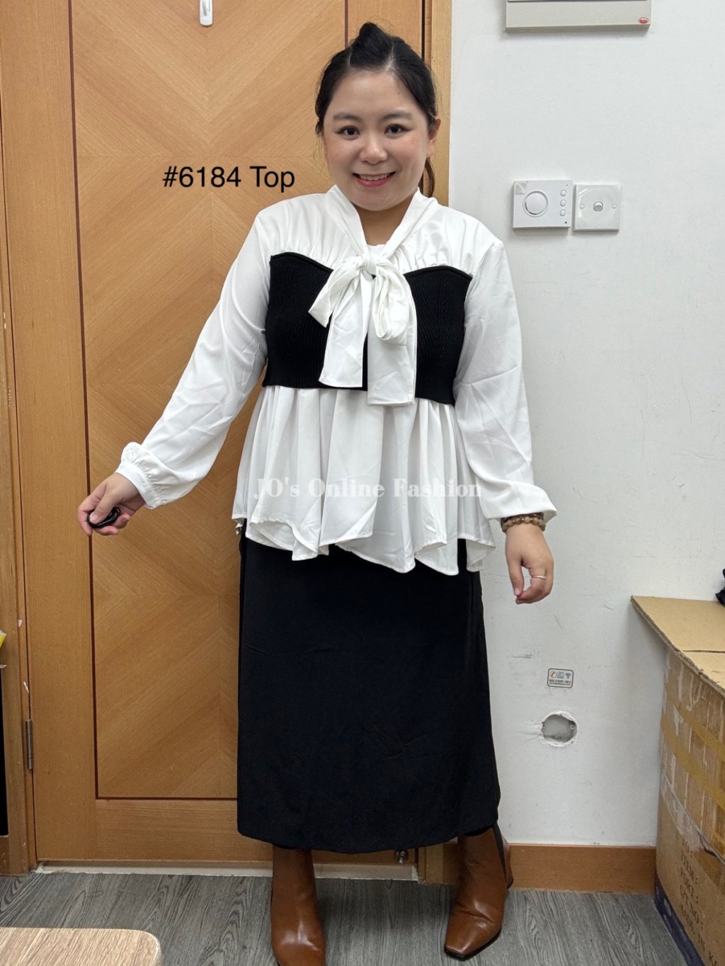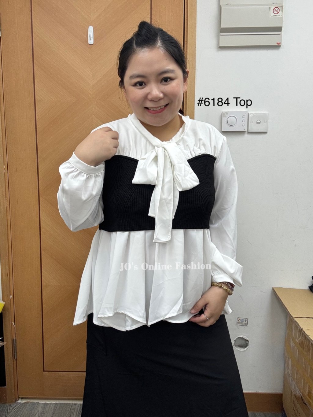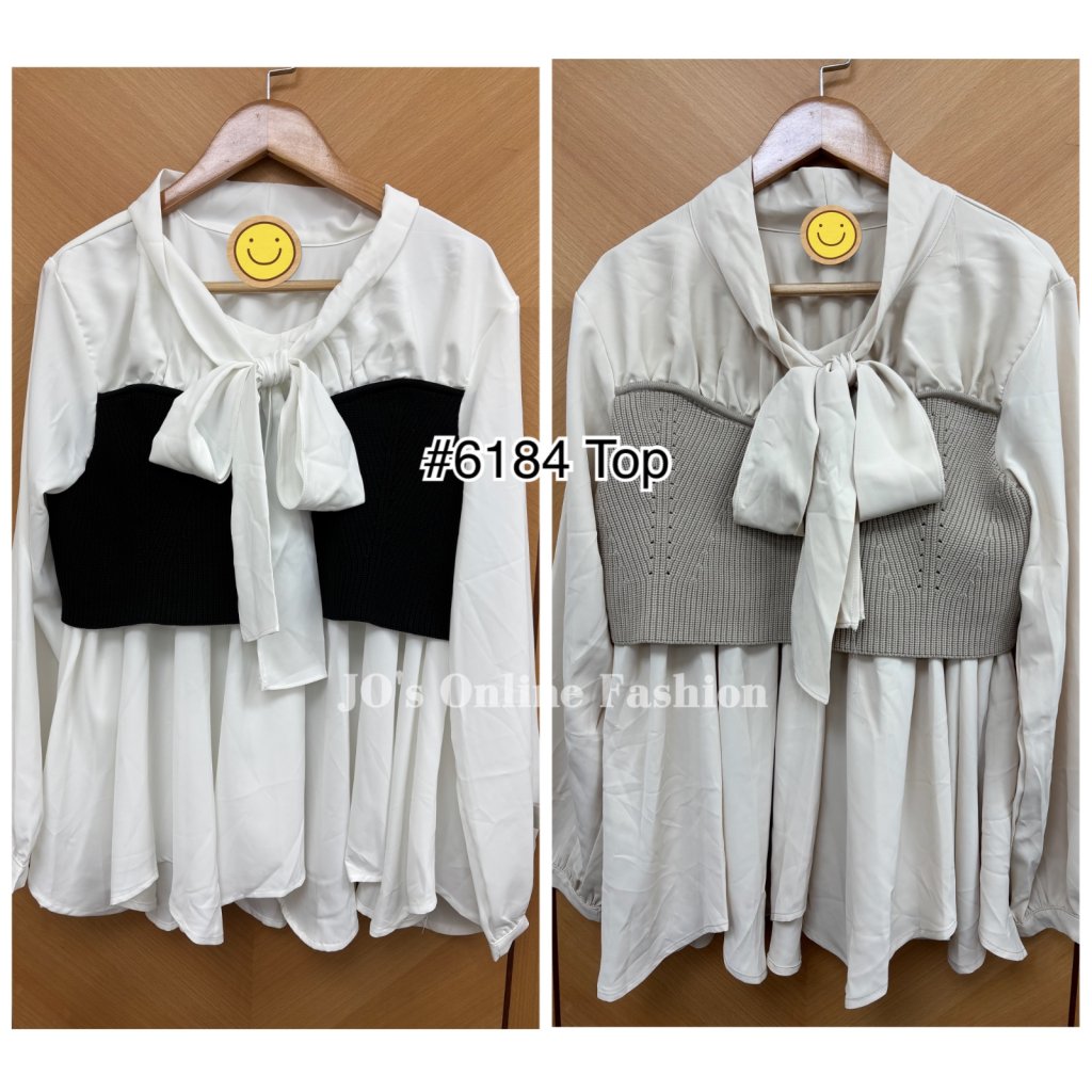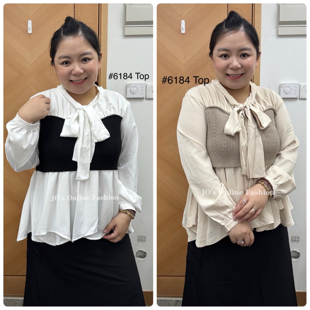 現貨[6184] 極矜貴韓風拼彈性布小娃型衫(黑拼白/米杏)