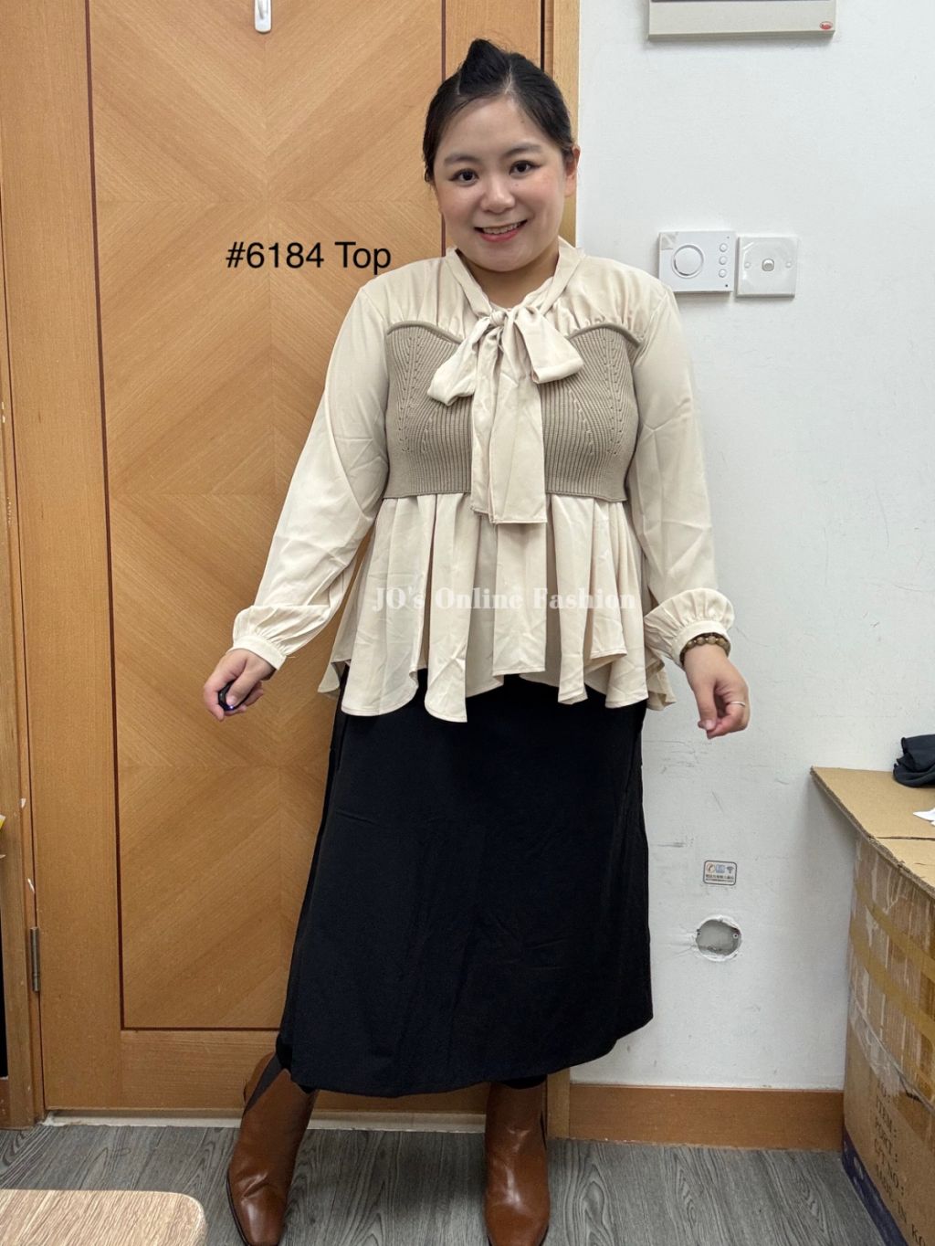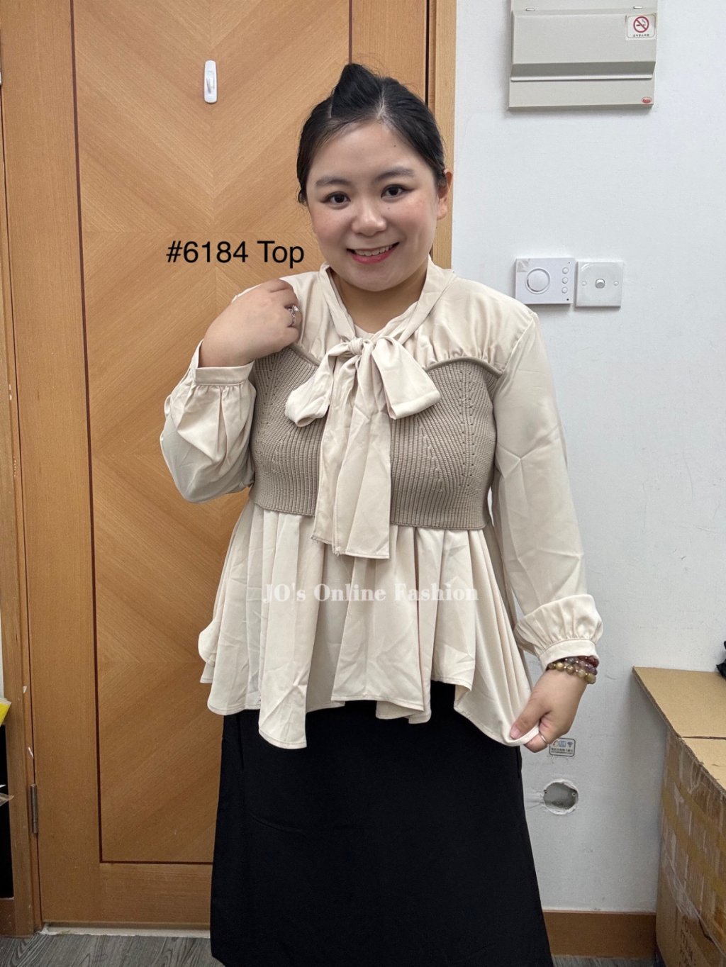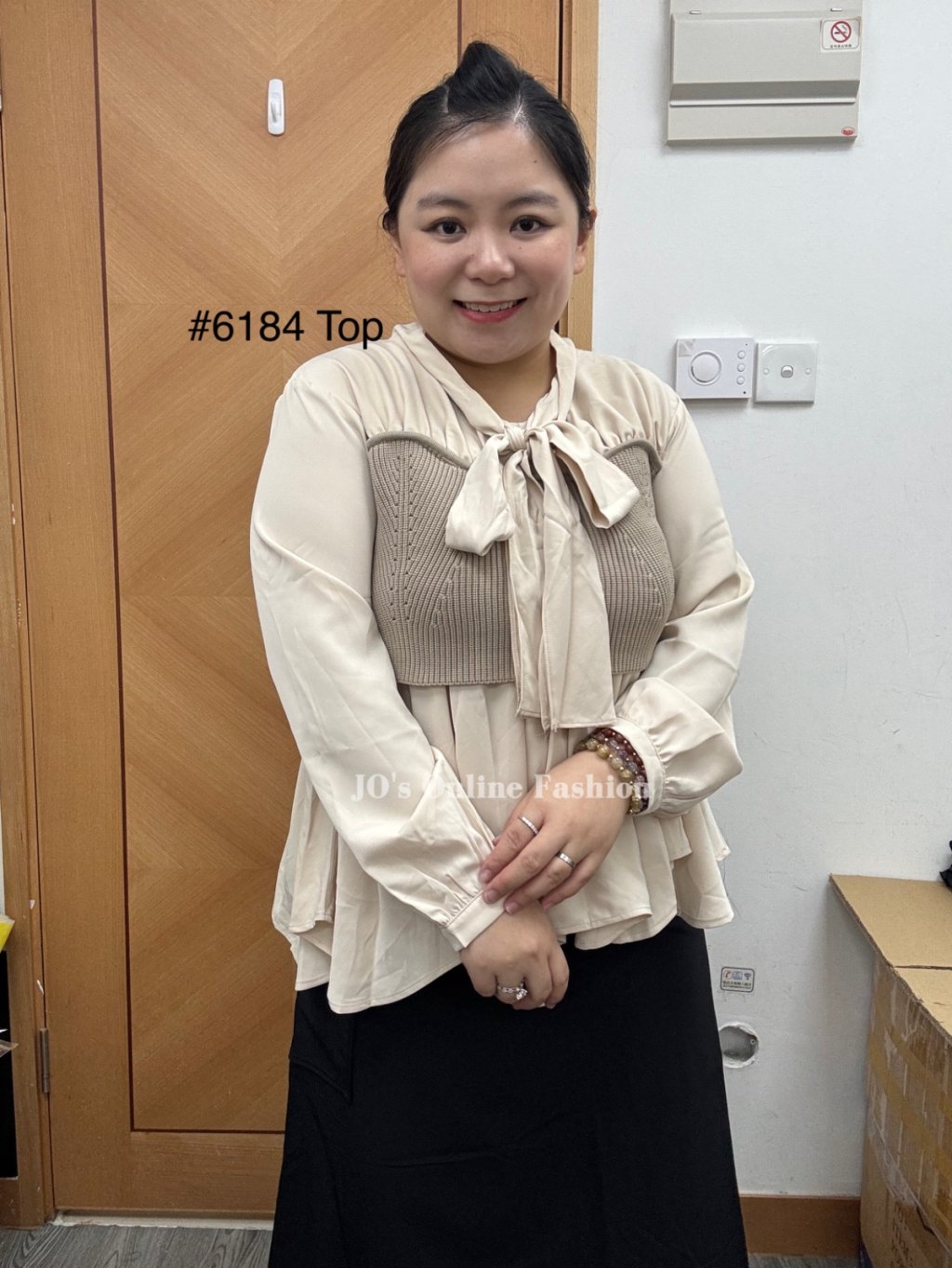 現貨[6184] 極矜貴韓風拼彈性布小娃型衫(黑拼白/米杏)