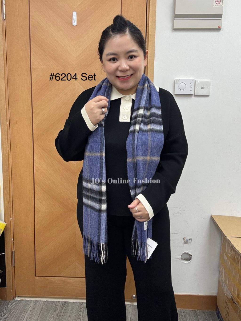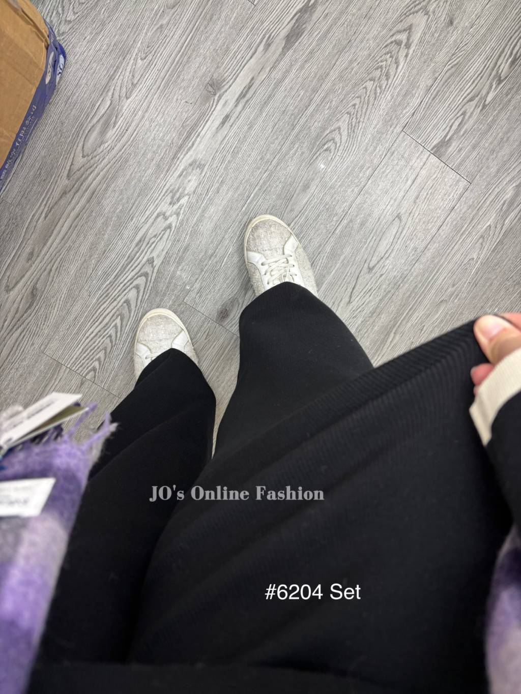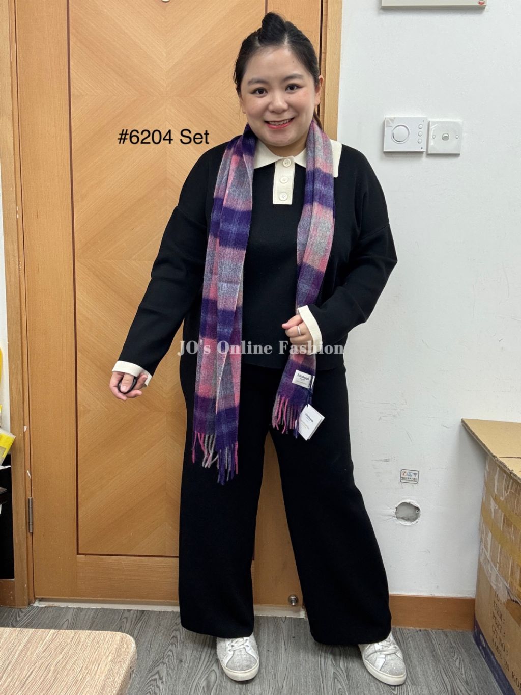 現貨[6204] 薄身反領扭釦大彈性連喇叭褲套裝 (黑)