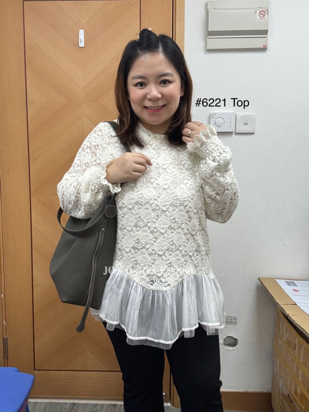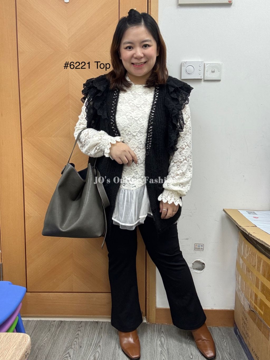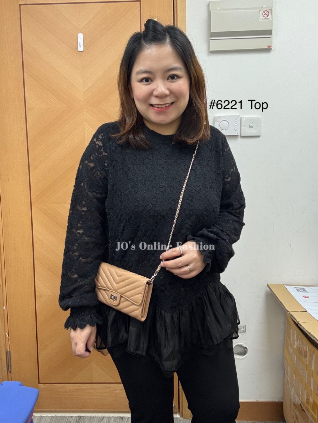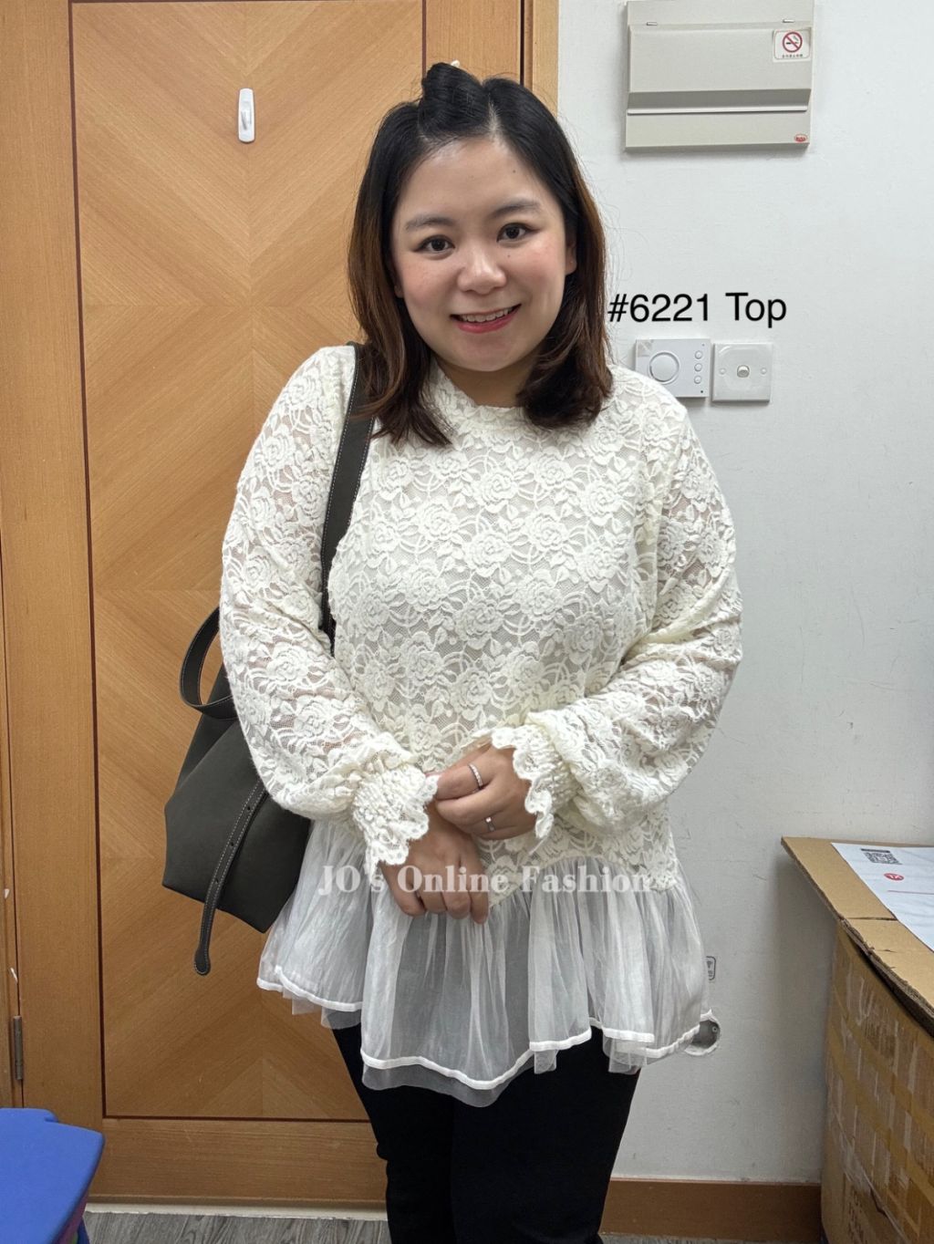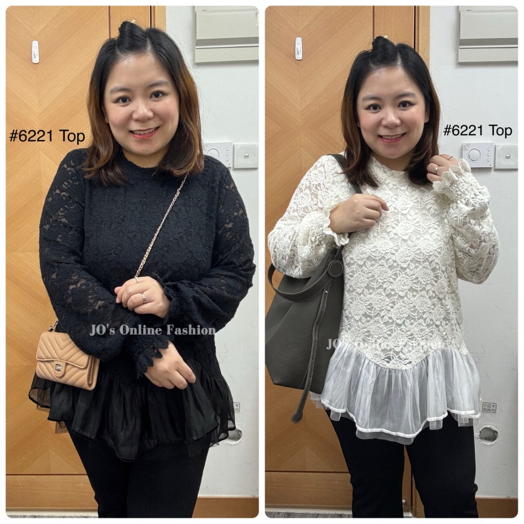 現貨[6221] 超高質全Lace彈性袖拼Ruffle下擺衫(有內里;黑/象牙白)