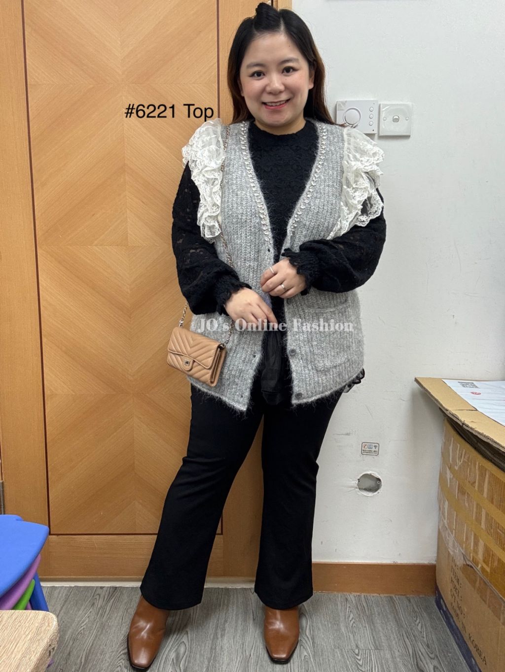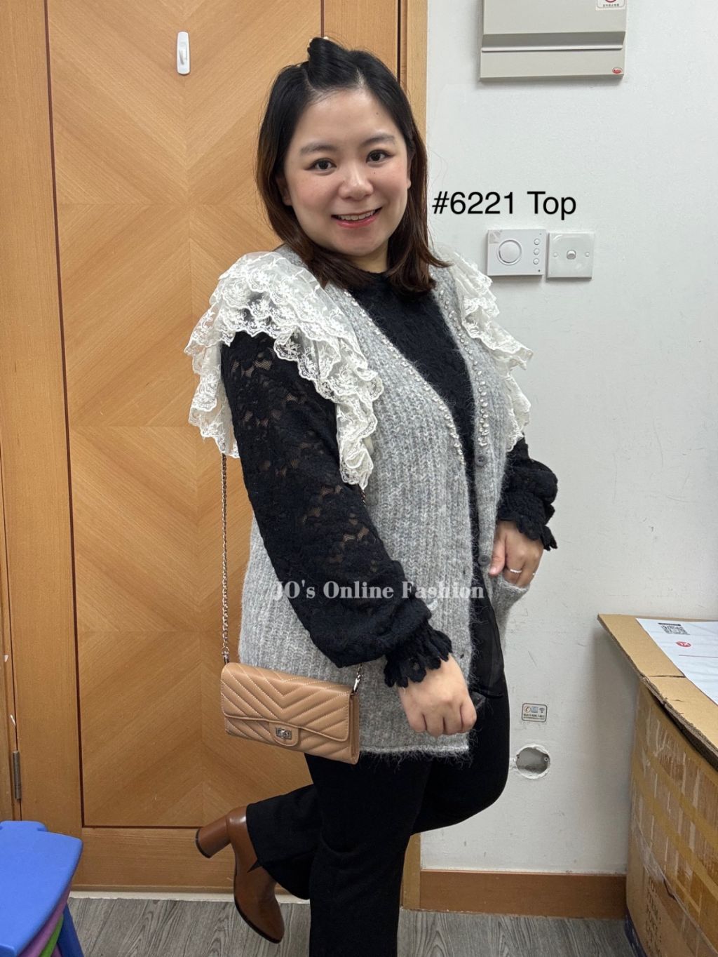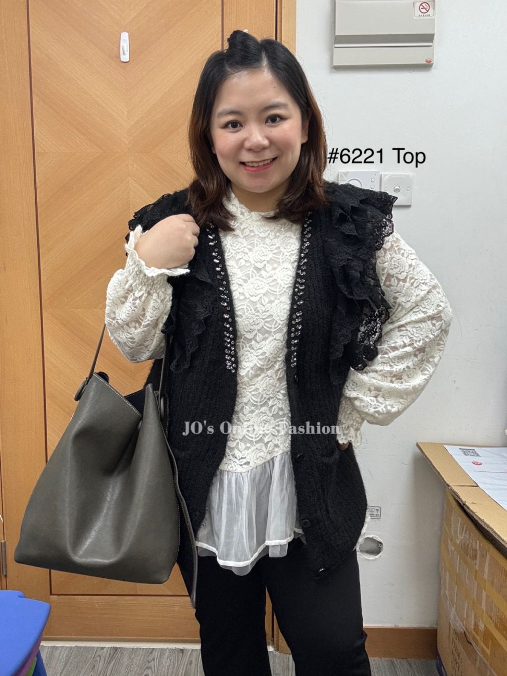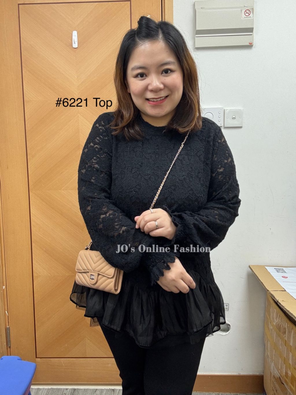 現貨[6221] 超高質全Lace彈性袖拼Ruffle下擺衫(有內里;黑/象牙白)