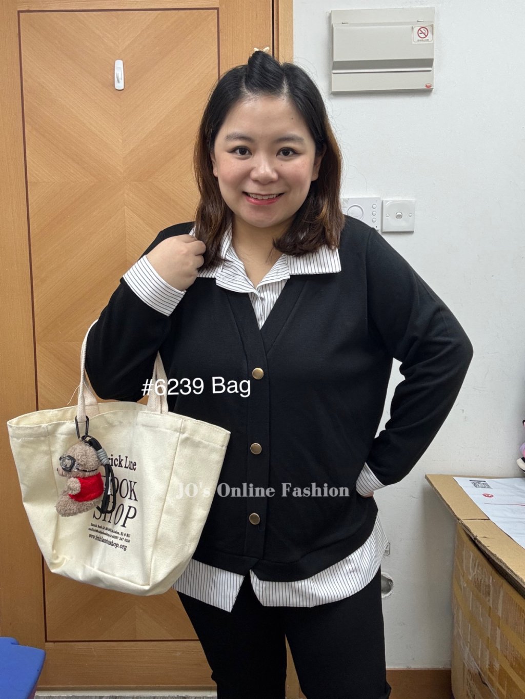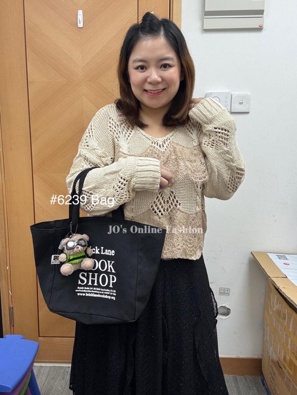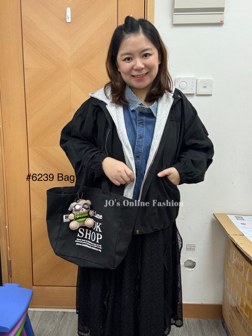 現貨[6239] 超抵買英倫風手挽布袋(送公仔扣;黑/杏)