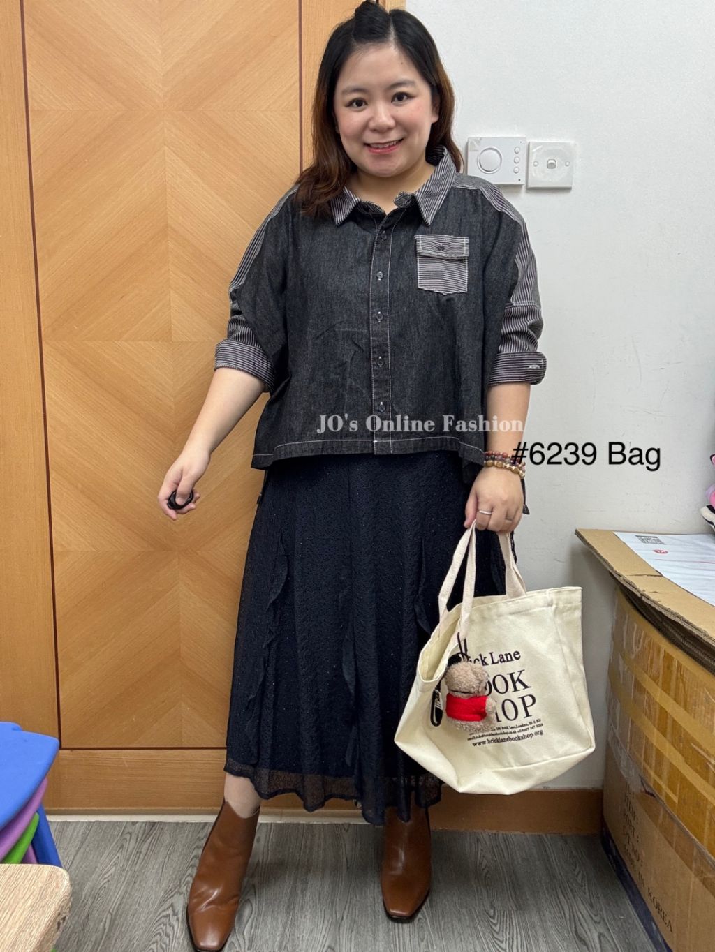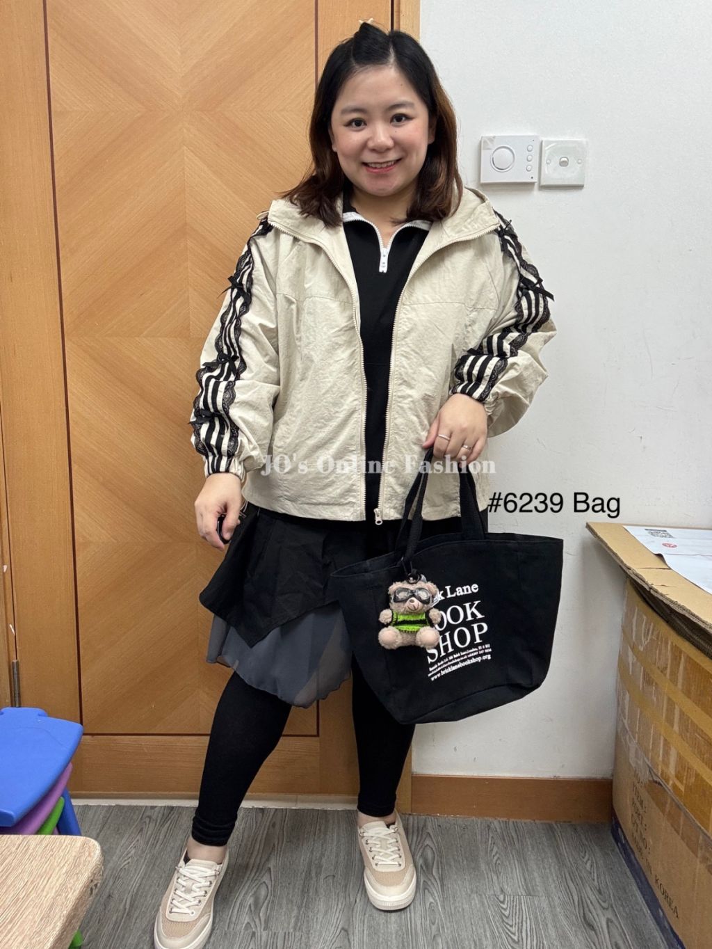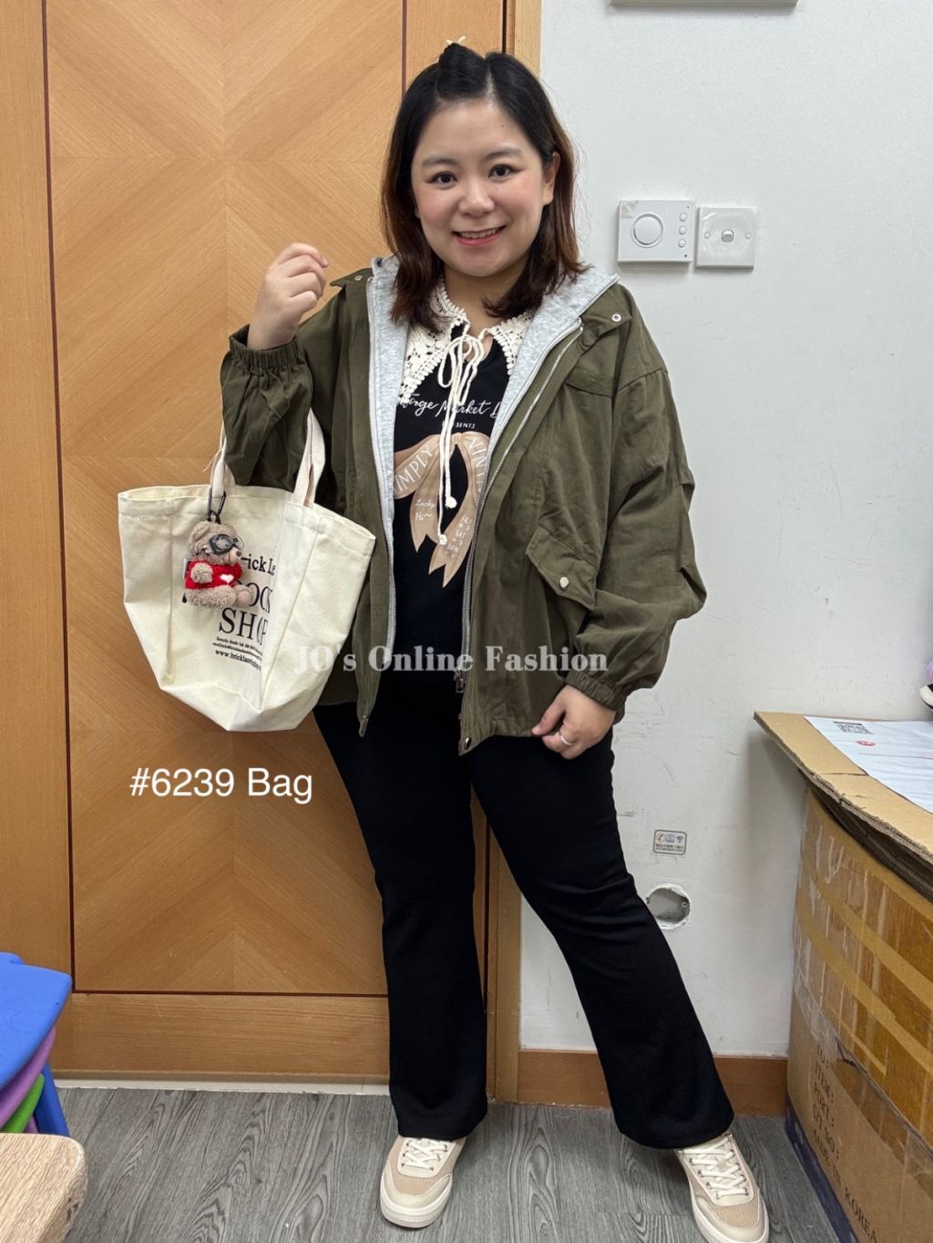 現貨[6239] 超抵買英倫風手挽布袋(送公仔扣;黑/杏)