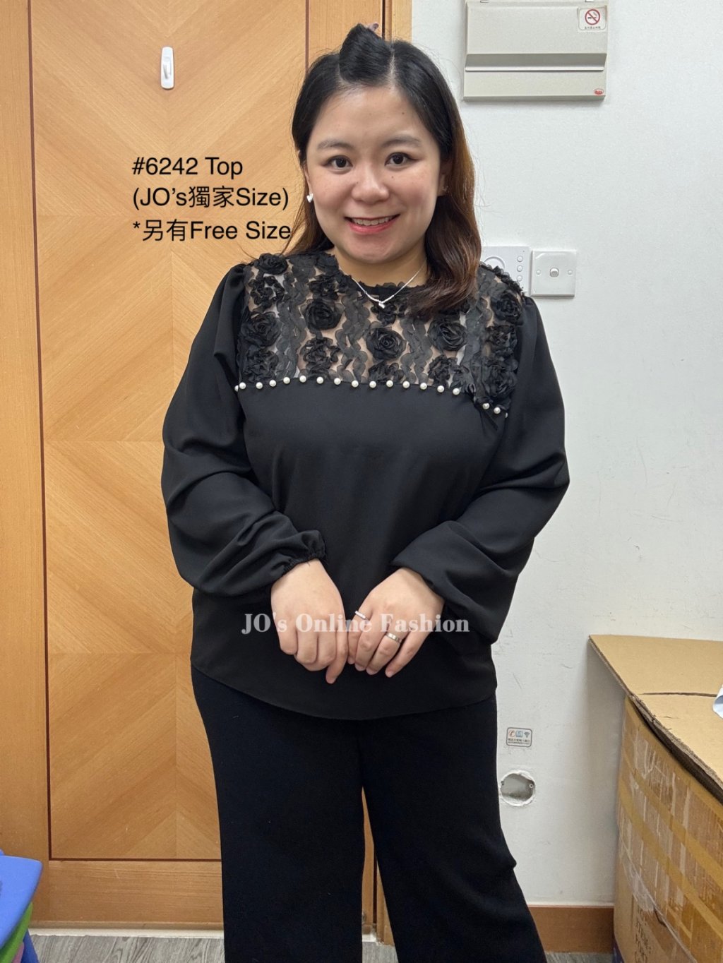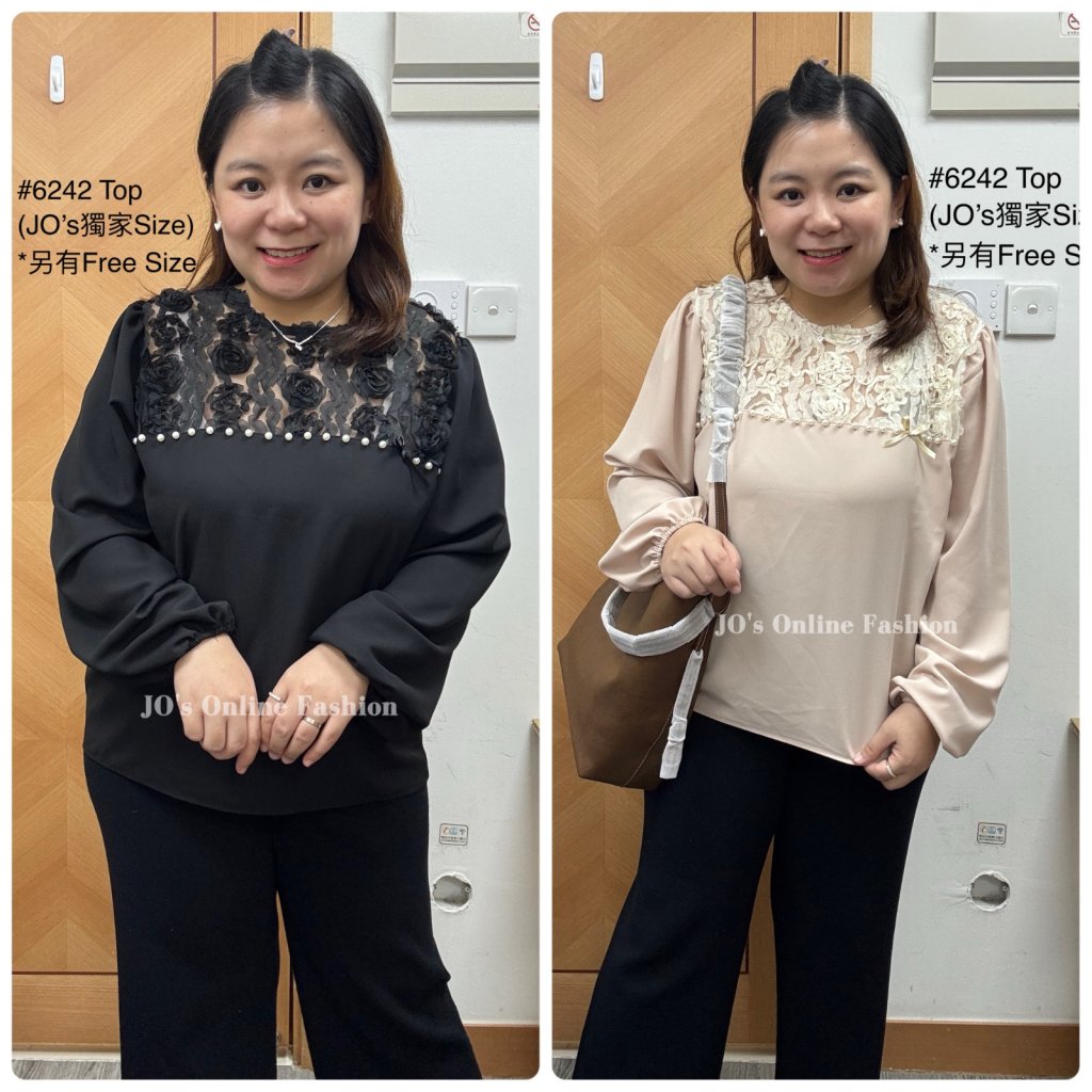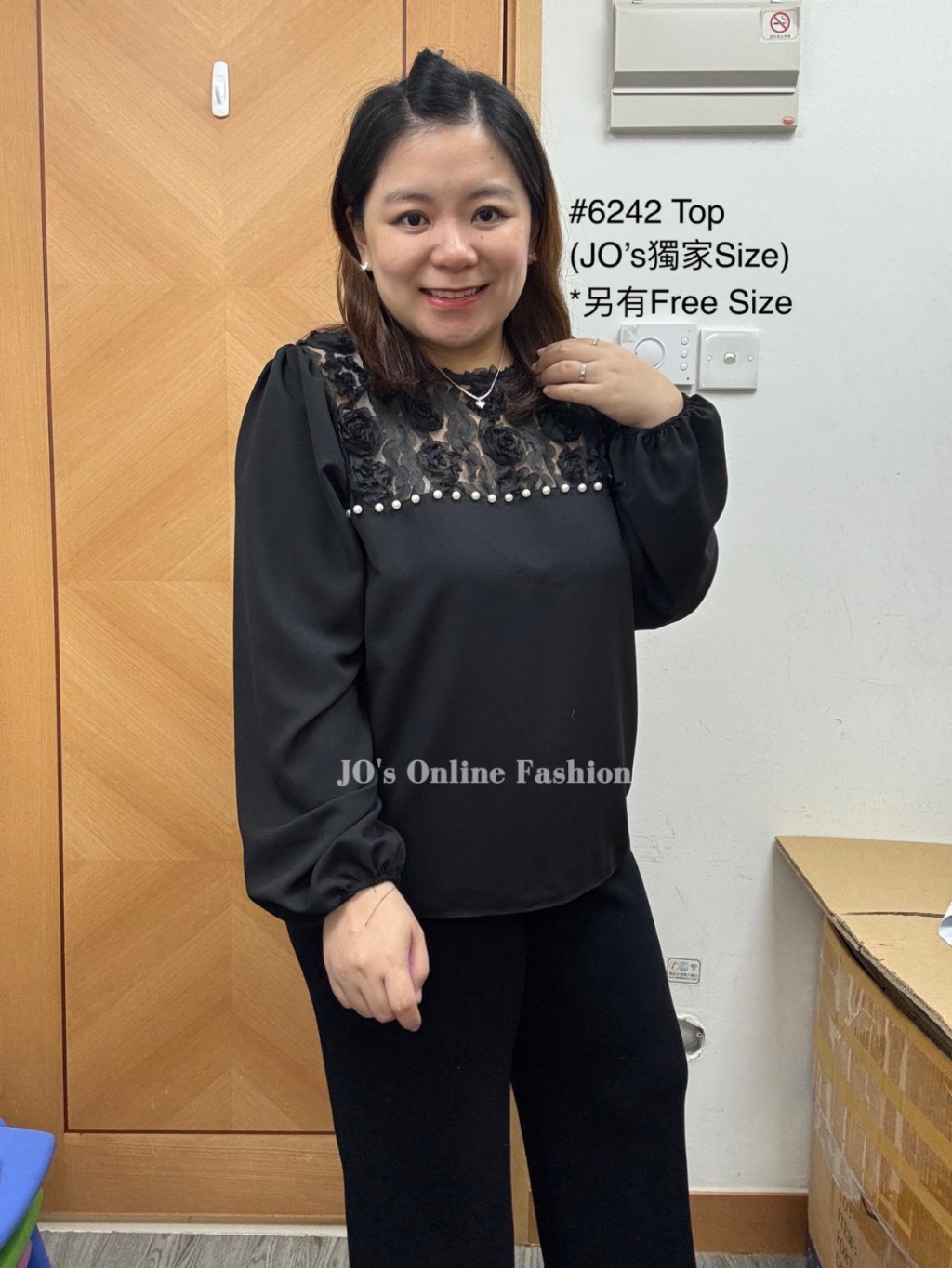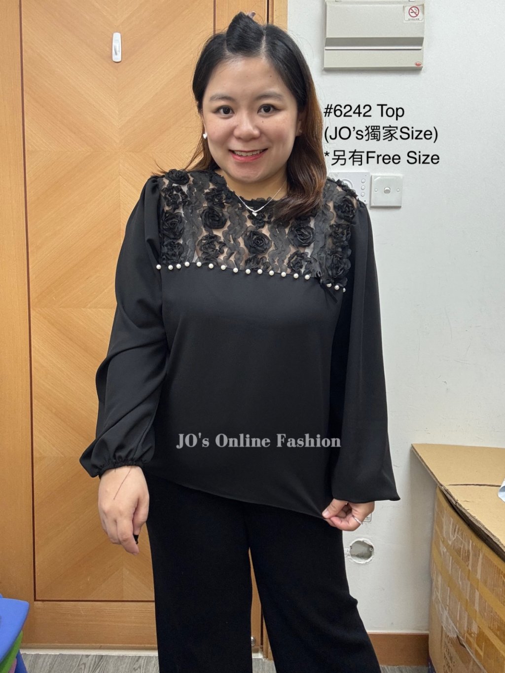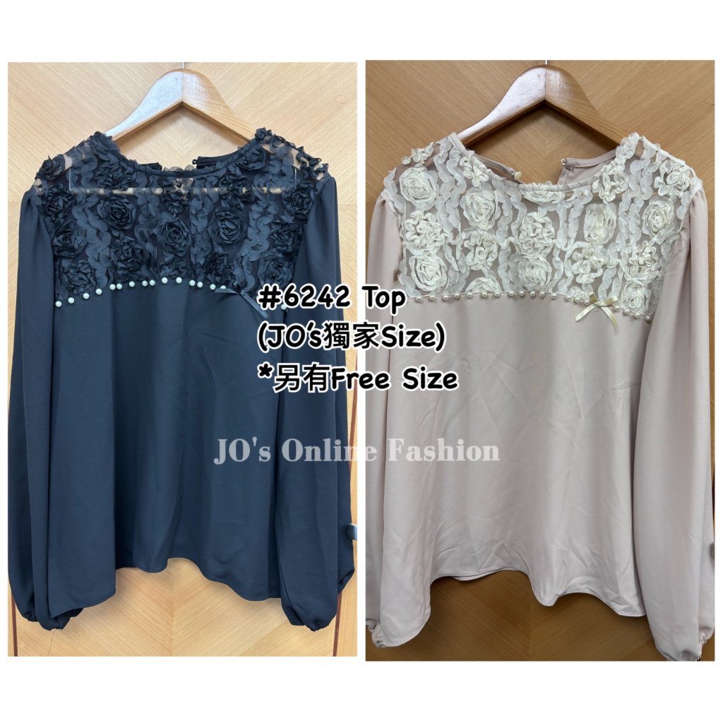現貨[6242] 優雅立體玫瑰花小透視珍珠衫(黑/粉杏;JO’s獨家Size;另有FreeSize)