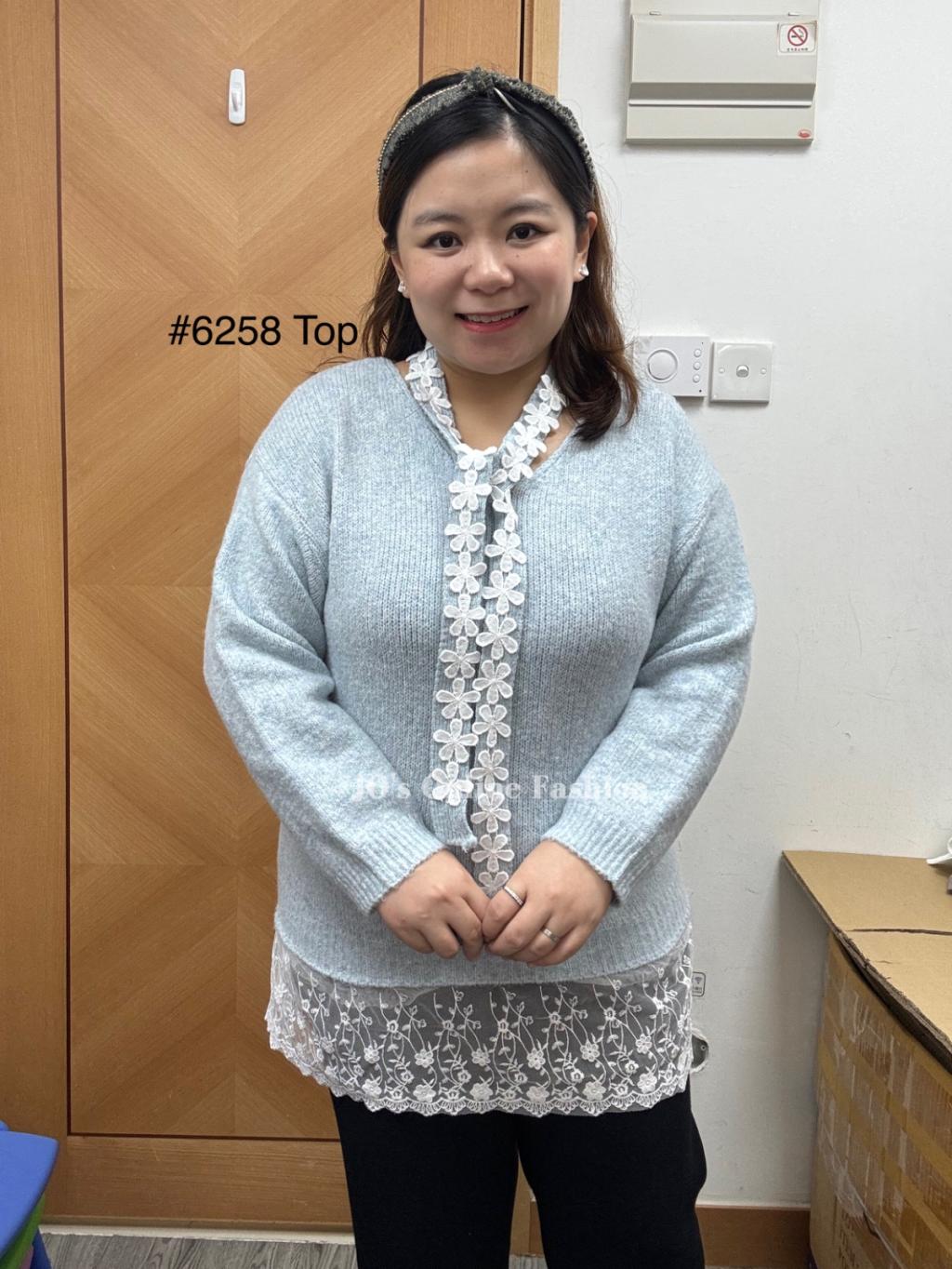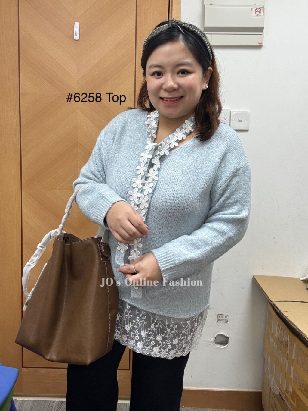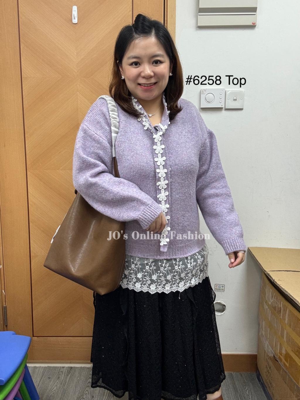主頁 現貨[6258] 淨色V領拼Lace邊冷衫(紫/粉藍;有毛;腰帶可拆)
