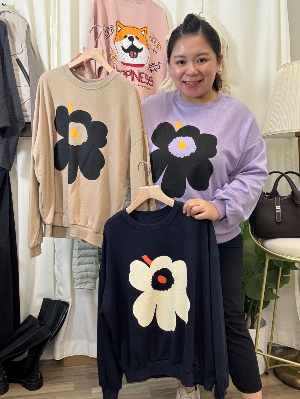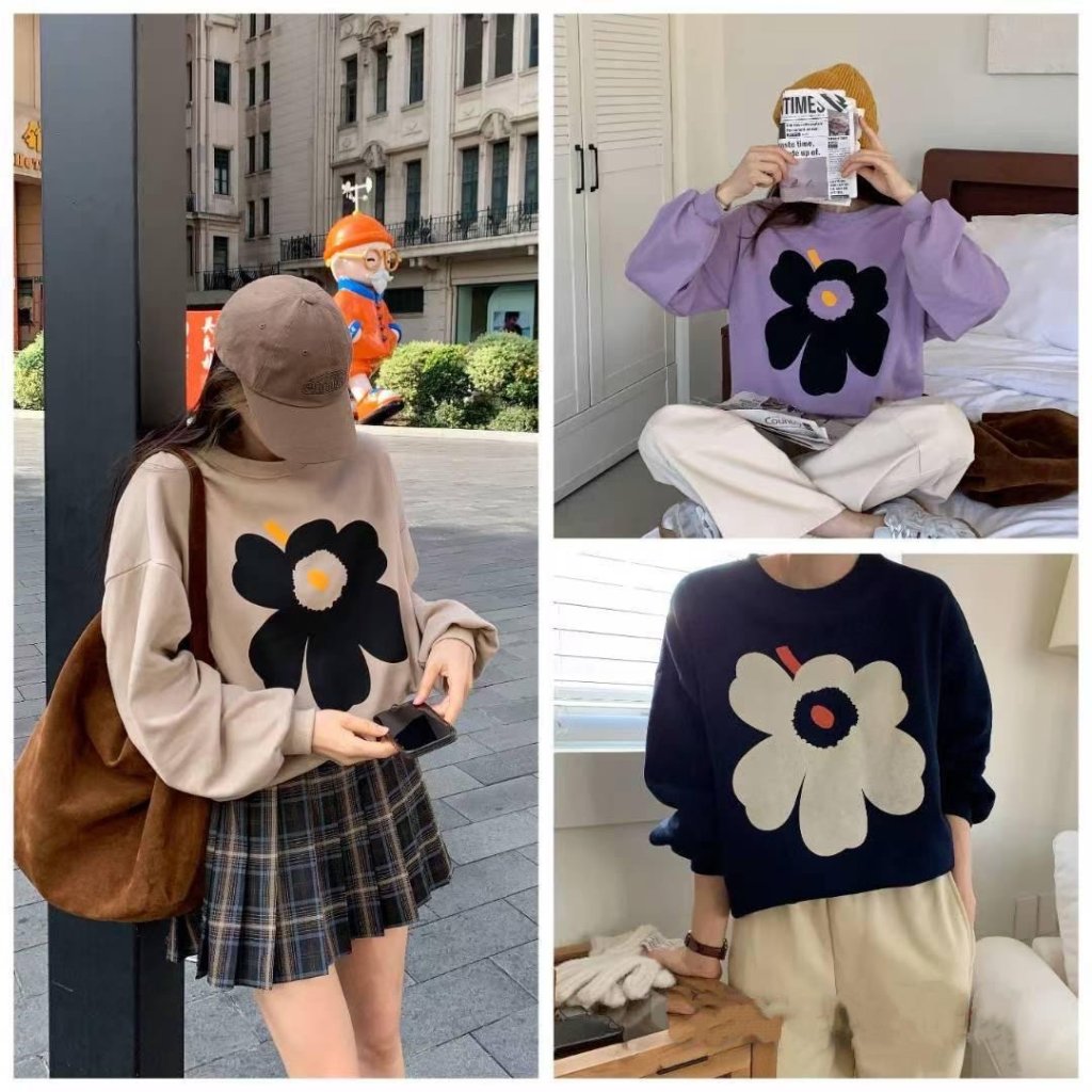 [KR14] 鬆身軟熟大花花棉質衛衣(3色)*約1月頭至中到貨