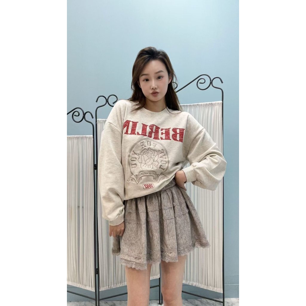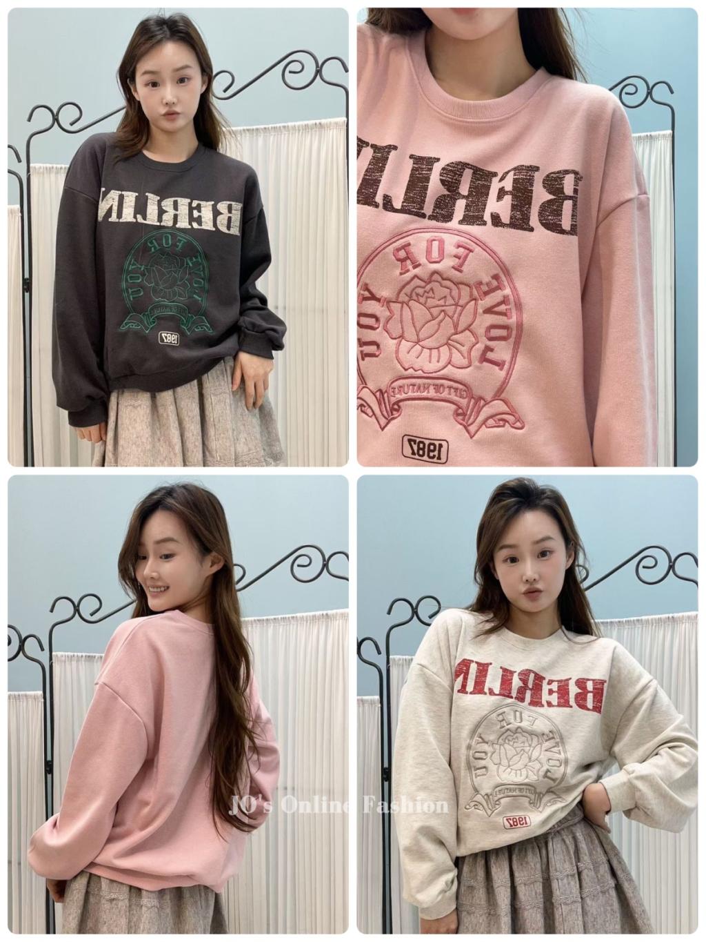 [KR16] 撞色字刺繡圖案棉質衛衣(3色)*約1月頭至中到貨
