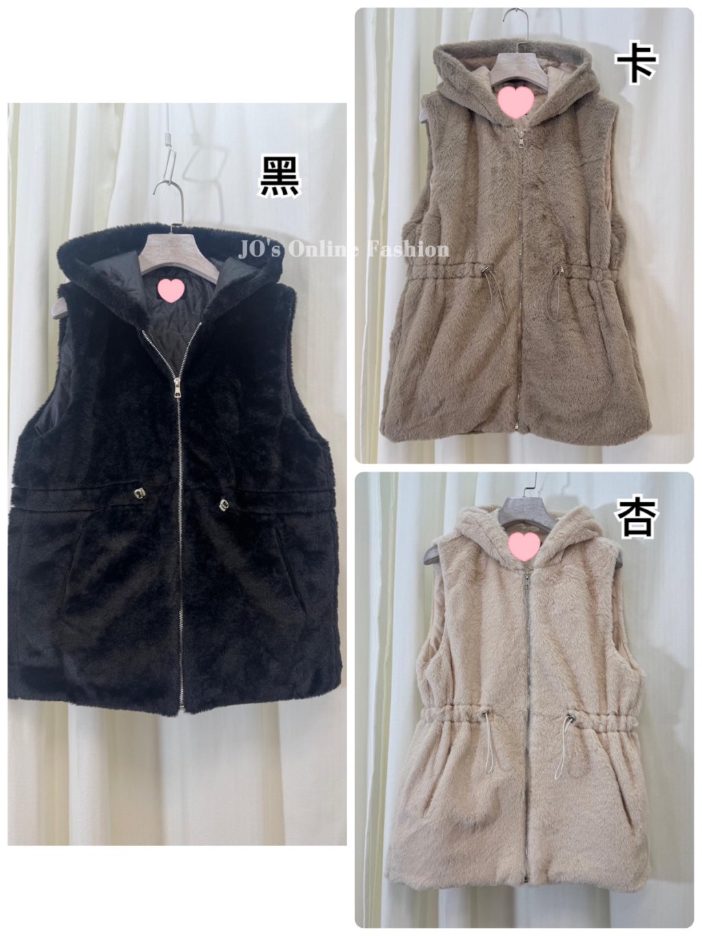 [KR17] 超抵著素毛有帽可束條背心外套(3色) *約1月頭至中到貨
