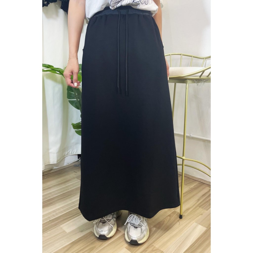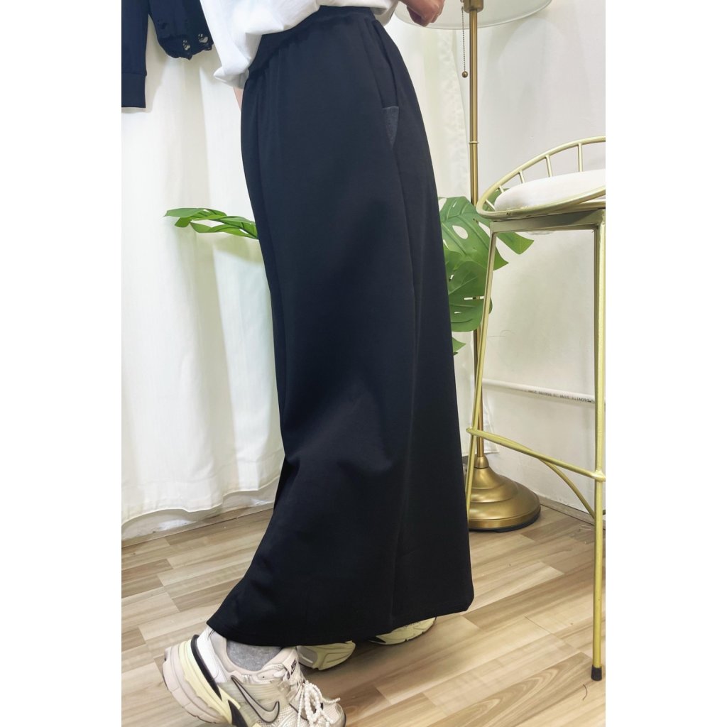 [KR21] 拼色腰休閒款長裙(黑)*約1月頭至中到貨