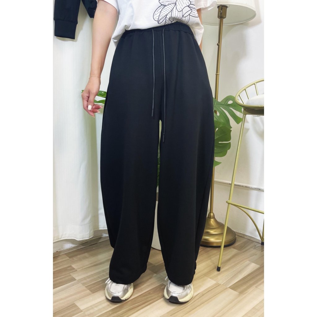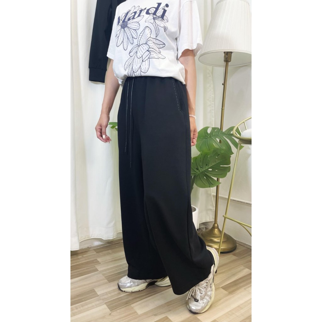 [KR22] 拼色腰休閒款闊褲(黑)*約1月頭至中到貨