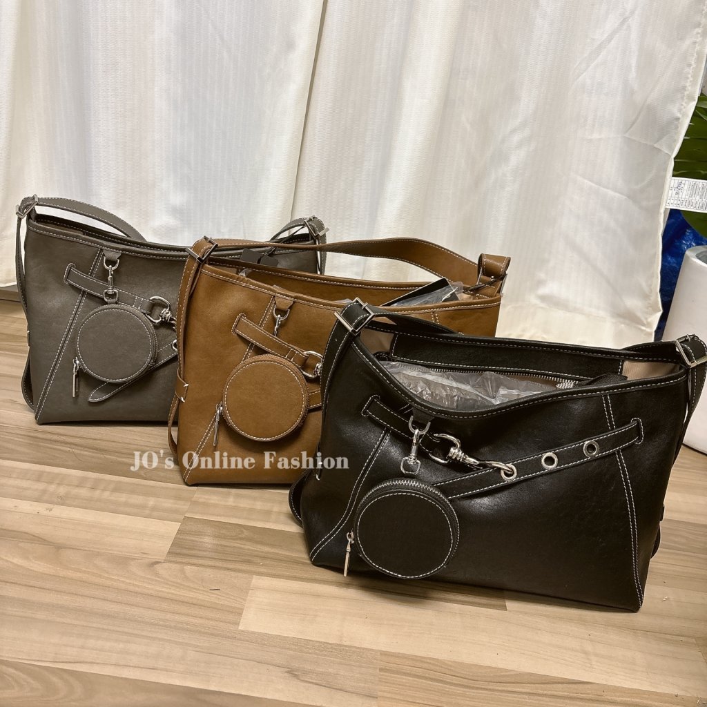 [KR23] 韓國🇰🇷製牛皮極大容量梯形餃子手袋(附送可拆圓形包;3色)*約1月頭至中到貨